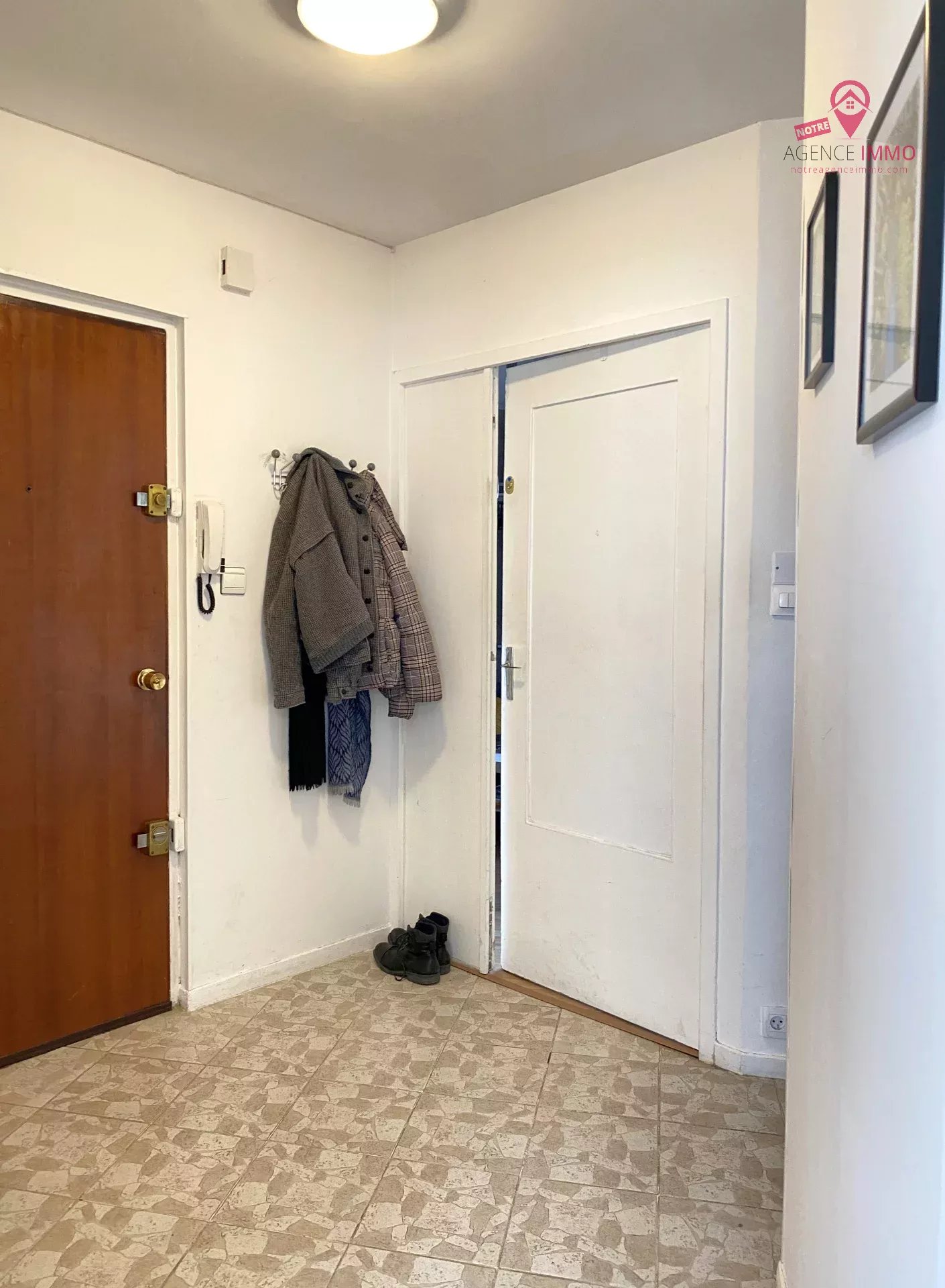 Une entrée avec placard, une cuisine indépendante aménagée et équipée, une salle de bains et un WC séparé.